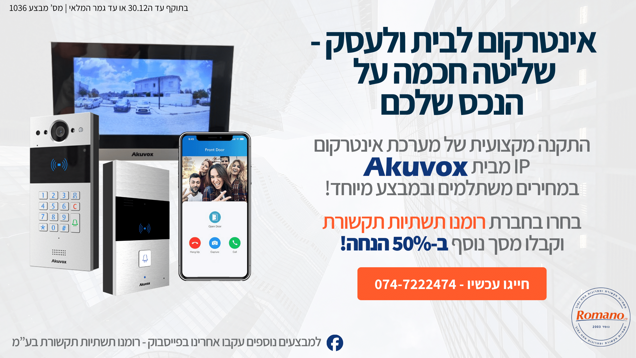 חפשו אותנו בפייסבוק לעוד מבצעים או עידכונים – רומנו תשתיות תקשורת בע"מ