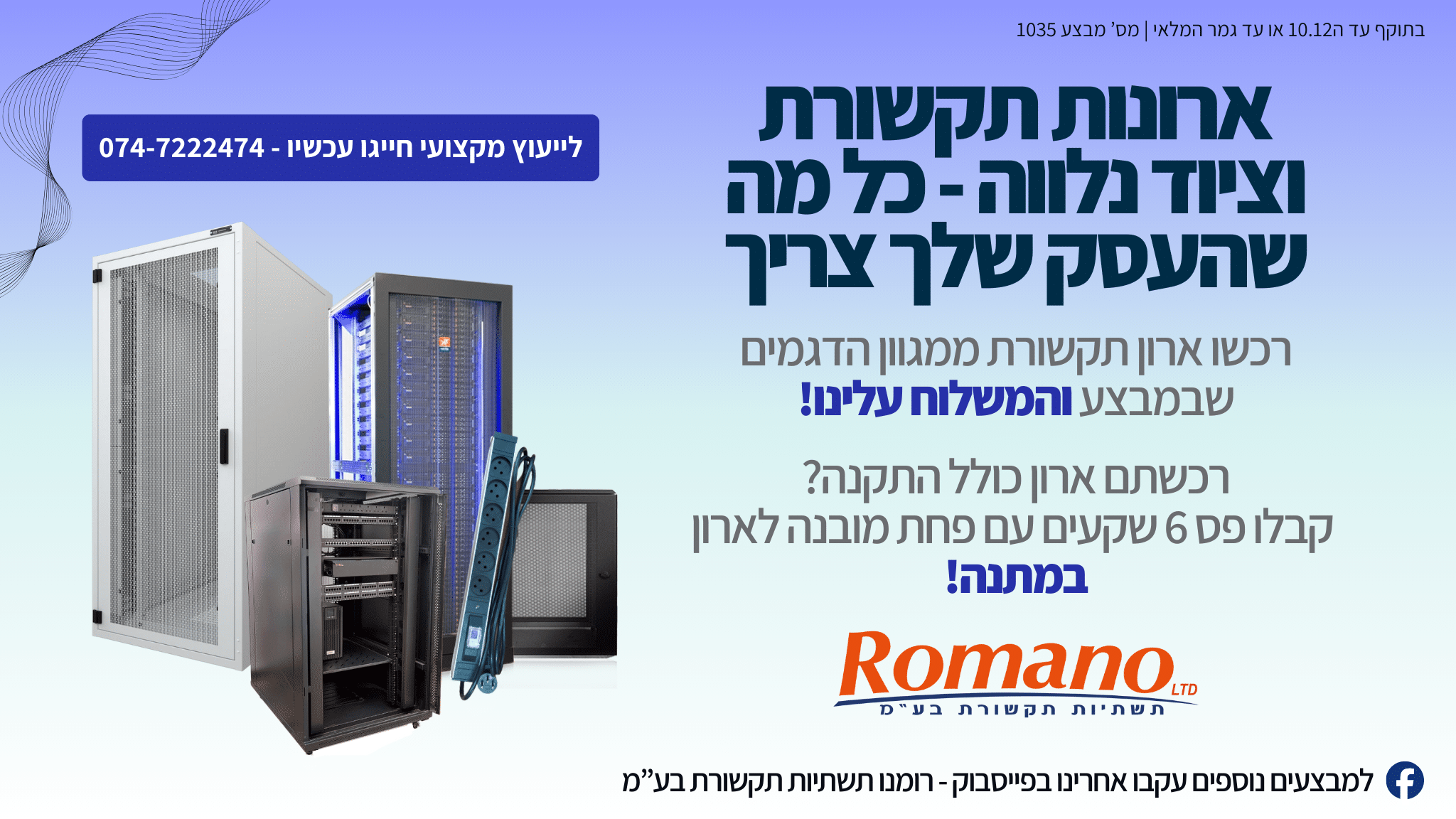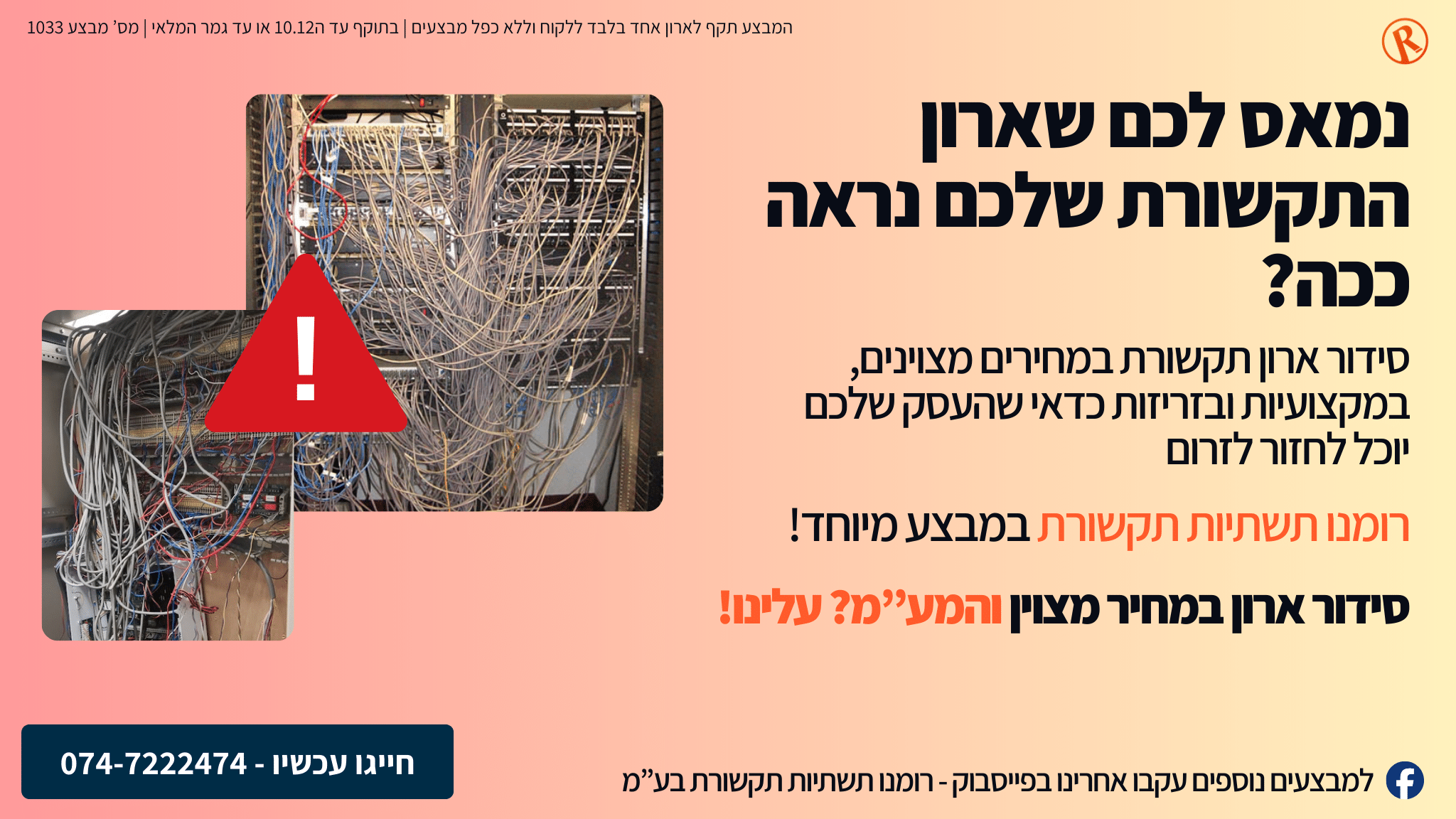 ועכשיו במבצע מיוחד – סדרו את ארון התקשורת שלכם עם רומנו תשתיות תקשורת והמע"מ? עלינו!