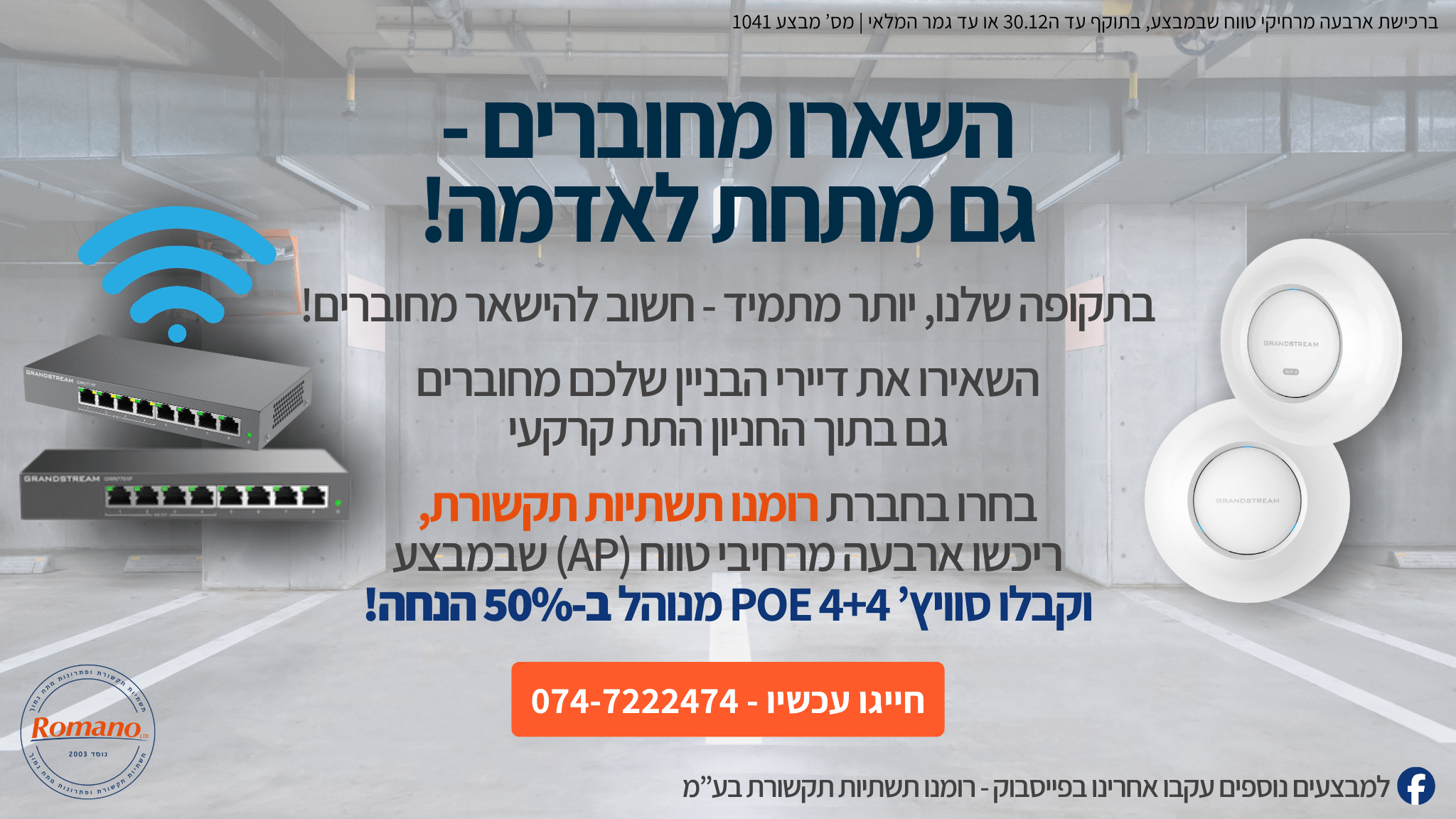 במיוחד עכשיו – במבצע משתלם עם רומנו תשתיות תקשורת: