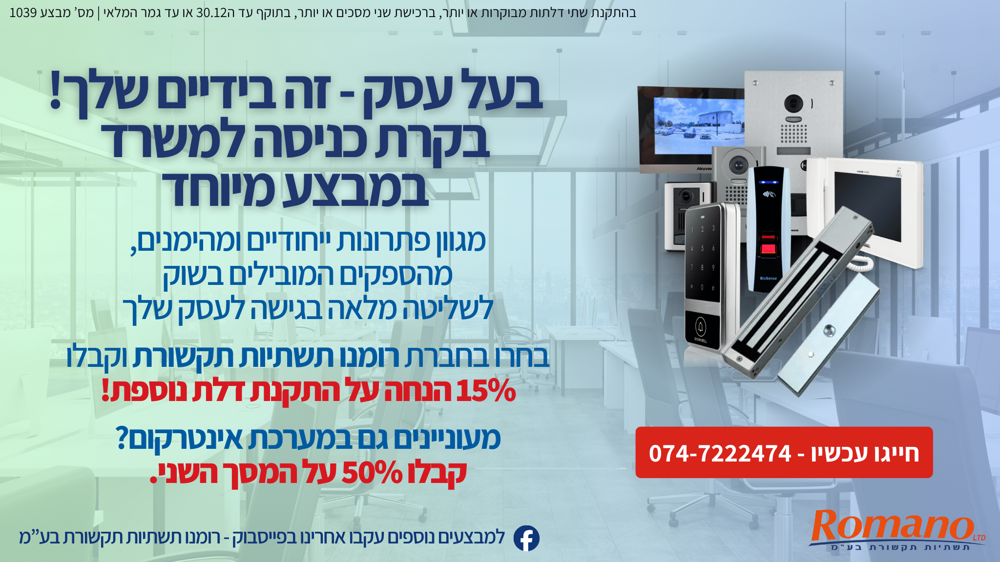 בעל עסק – זה בידיים שלך! בקרת כניסה למשרד במבצע מיוחד