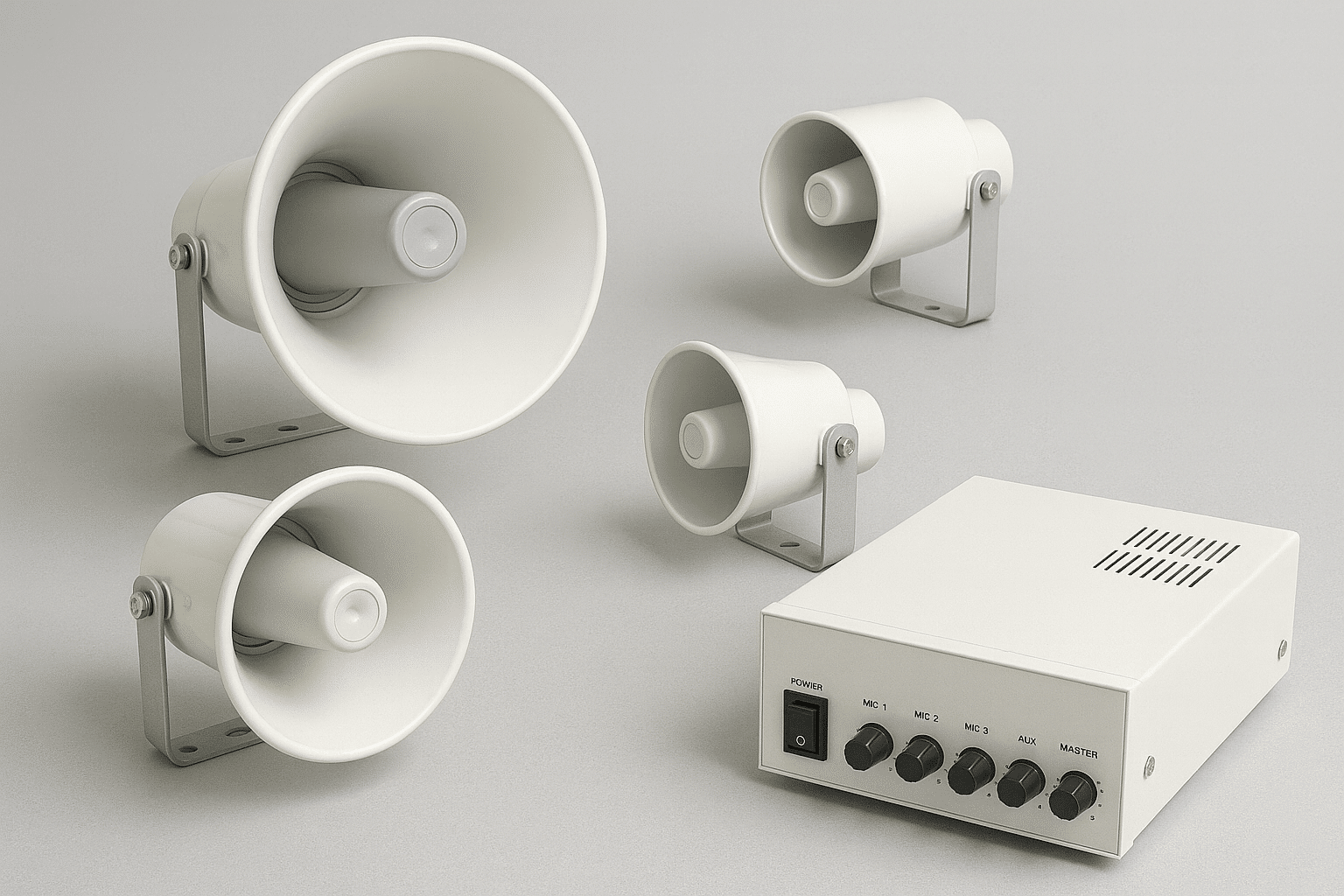 - מערכות כריזה דיגיטליות – מאפשרות שליטה חכמה, חלוקה לאזורים שונים, והטמעה עם מערכות נוספות כמו אזעקה או אינטרקום.