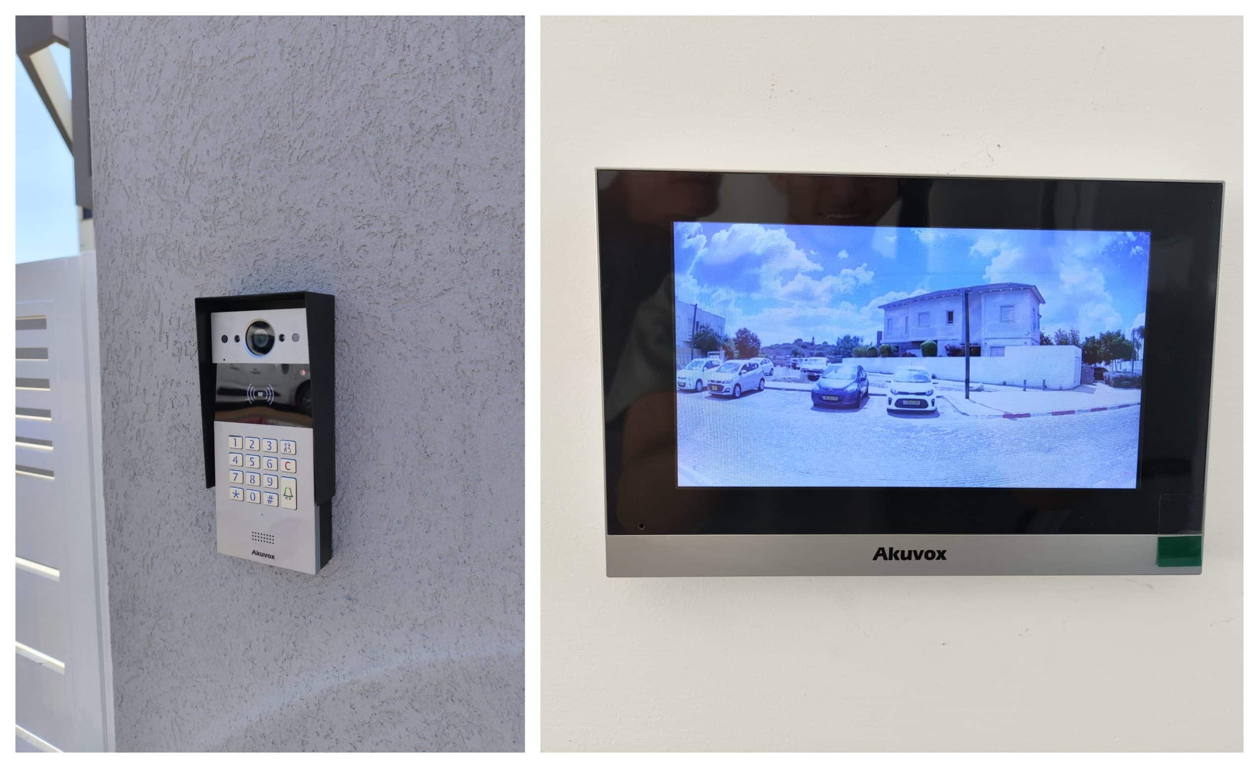 מצלמות אבטחה בפאנל הכניסה – כך שהדייר יכול גם לשמוע וגם לראות את האדם שמבקש להיכנס, באמצעות מסך בתוך הדירה.
